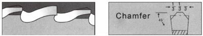 A tooth pair is consisting of one roughing tooth(1/3 cutting width) and one finishing tooth(2×1/3 dutting width).
