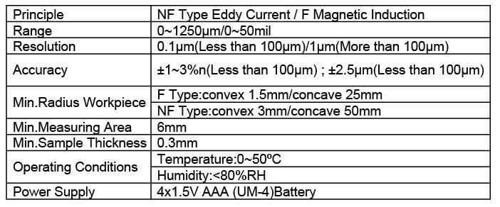 * Two measurement mode: Single and Continuous (Notice:Continuous mode is convenient to measure the coating thickness of curved objects and tiny objects.)
